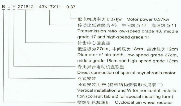 BLY擺線針輪減速機為法蘭式、專用異步電動機直聯(lián)型、立式安裝;